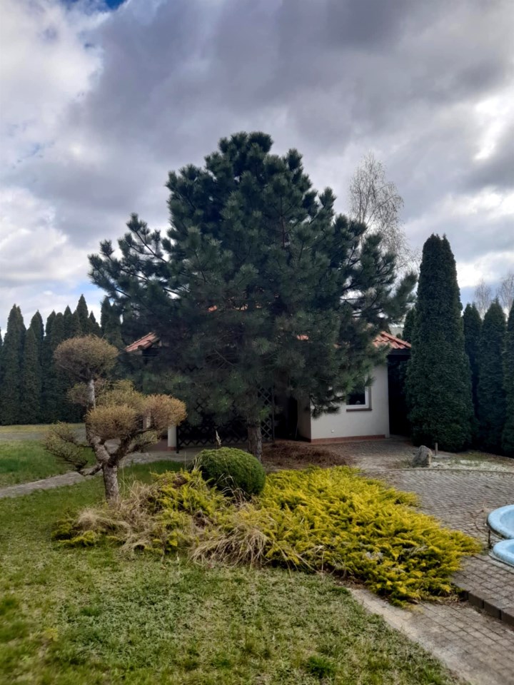 Powierzchnia całkowita domu 300m2, kondygnacje mieszkalne zajmują powierzchnię 200m2działce znajduje się budynek gospodarczy o powierzchni 40m2z jednostanowiskowym garażem, WC, kuchnią i    przyległą zadaszoną altaną. Atrakcją tej oferty jest zewnętrzny basen.