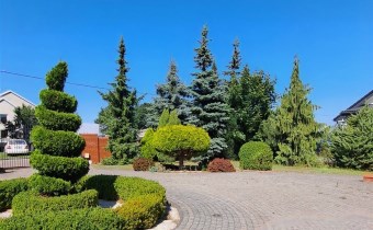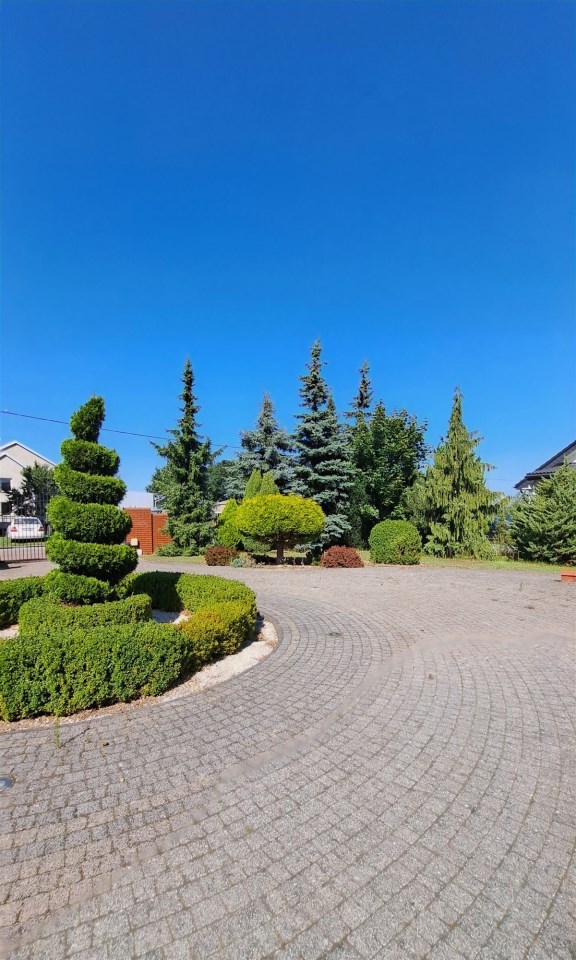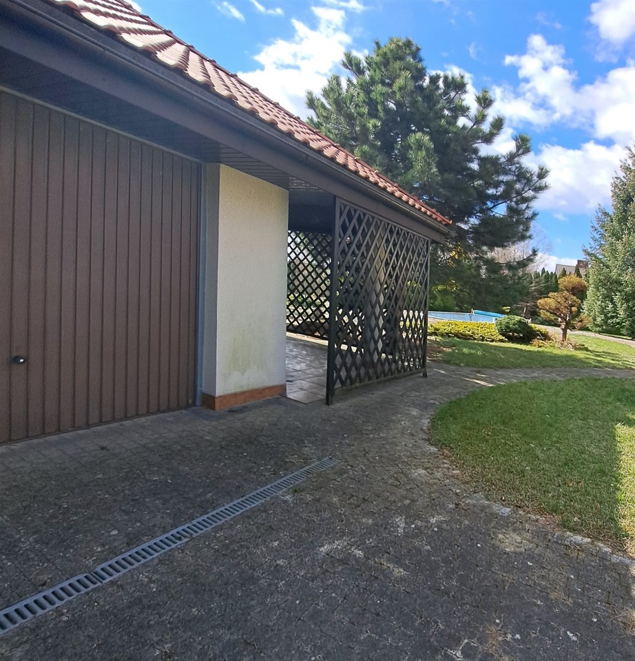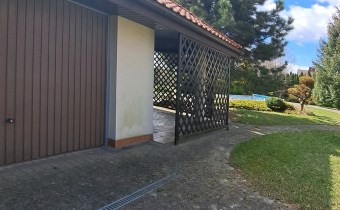 Dom, budynek gospodarczy oraz basen umiejscowione są na zagospodarowanych działkach z urządzonym, zadbanym ogrodem, wypielęgnowanymi nasadzeniami, do których prowadzą ścieżki wyłożone kostką. Do nieruchomości prowadzą drogi asfaltowe.
