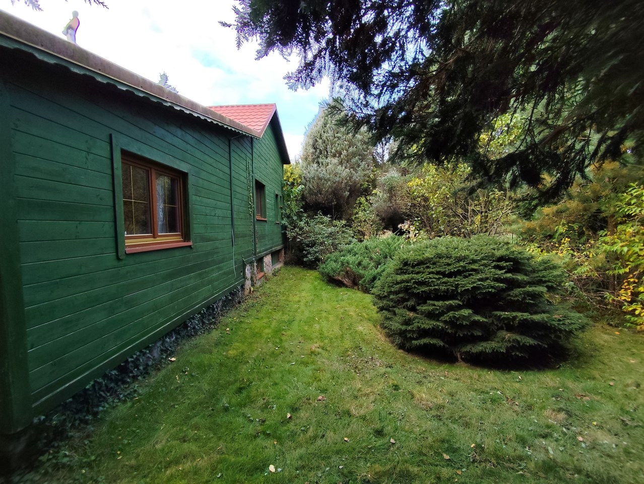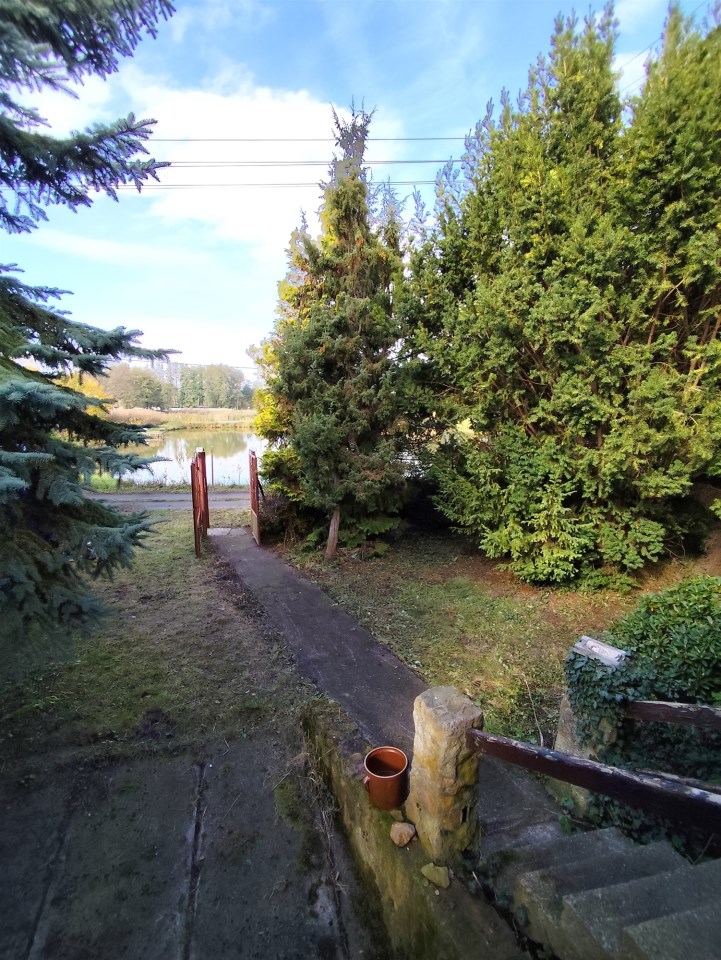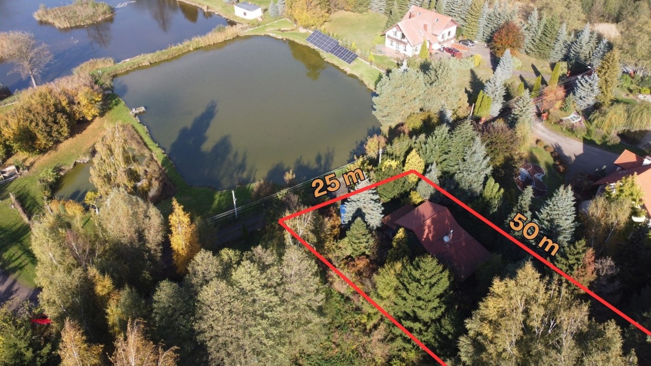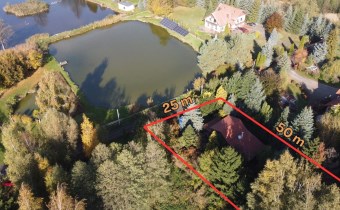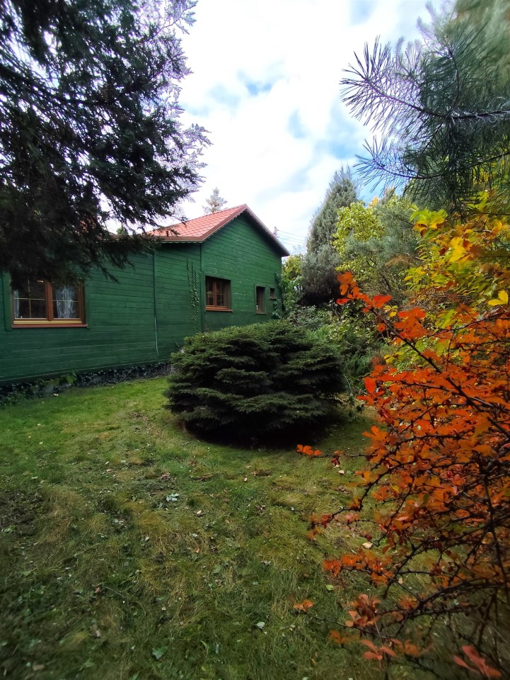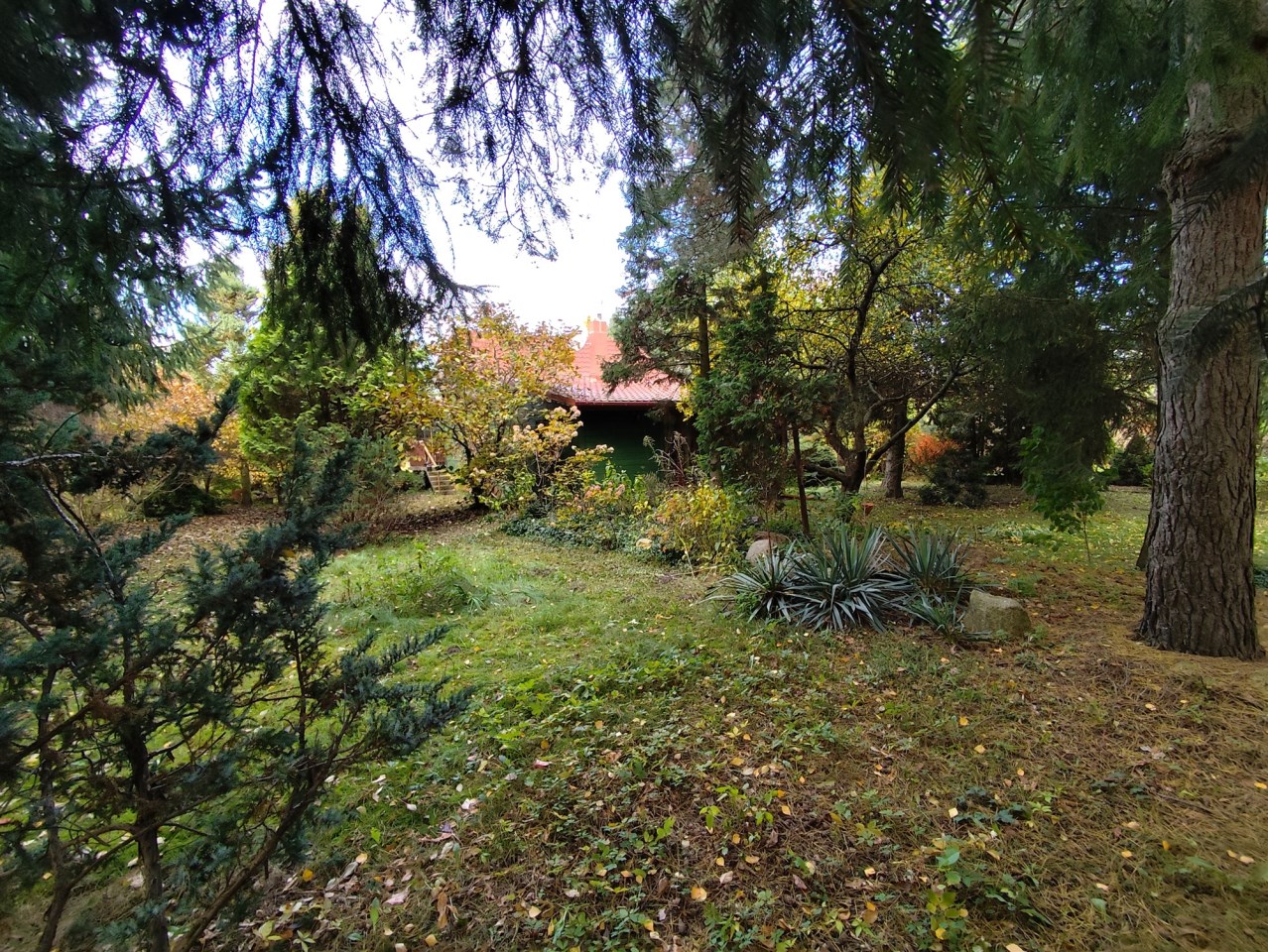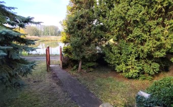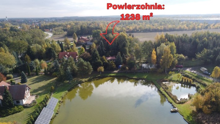 Działka o powierzchni 1238 m² jest w pełni zagospodarowana – dużo zieleni, krzewów oraz przestrzeni do wypoczynku. Nieruchomość od dużego stawu oddziela jedynie droga dojazdowa, co czyni to miejsce idealnym dla w miłośników natury.