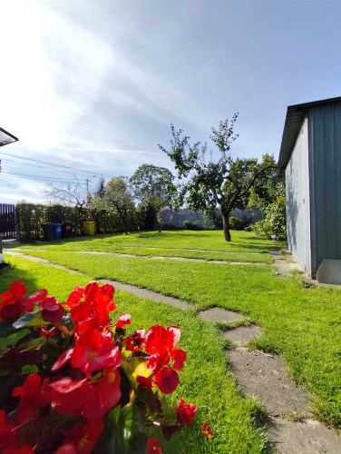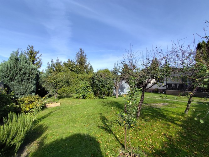 Ładna, zadbana działka z nasadzeniami i przestrzenią do wypoczynku.