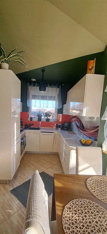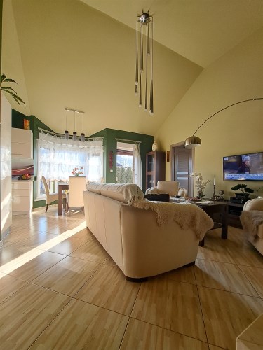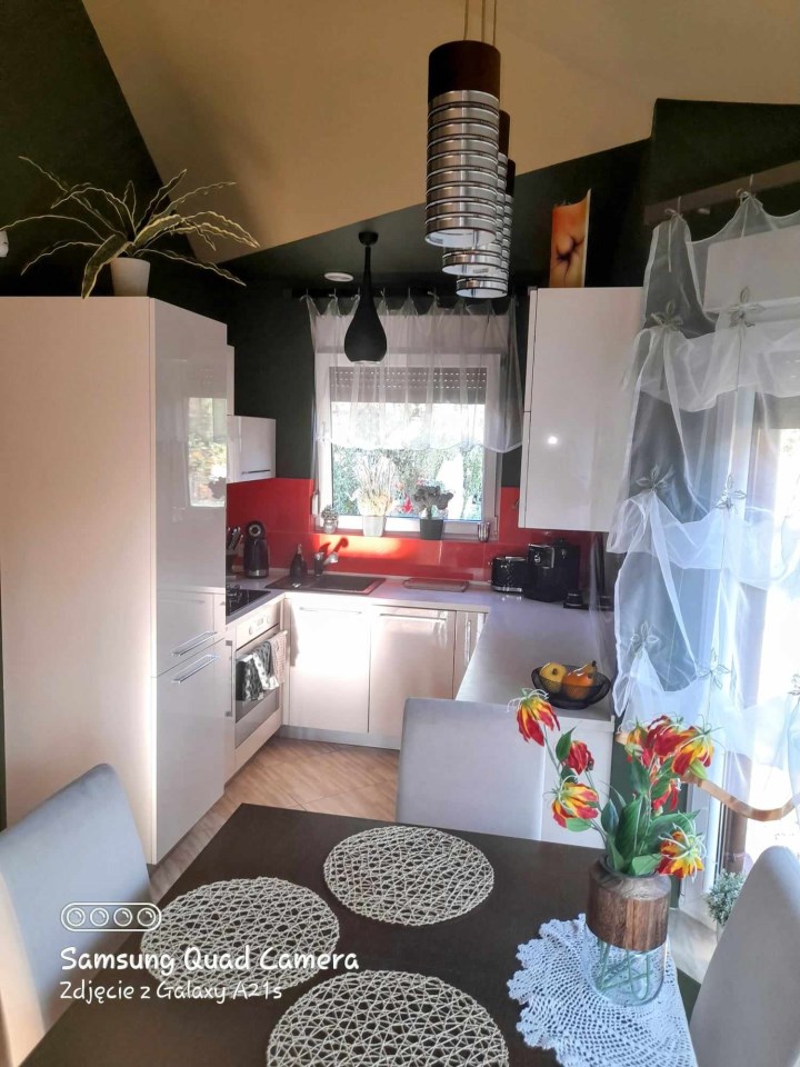 NOWOCZESNOŚĆ i KOMFORT na KAMERALNYM OSIEDLU w ŚWIERKLAŃCU Oto dom o powierzchni całkowitej 90 m² świetne miejsce, wszędzie blisko - czego chcieć więcej. Doskonałe miejsce do zamieszkania, a być może i do pracy. W domu bez wątpienia można urządzić biuro. Jednak skupmy się na MIESZKALNYCH walorach nieruchomości: bryła budynku - BLIŻNIAK - na sprzedaż 1/2 parterowego domu o powierzchni użytkowej 75 m2, garaż to dodatkowa powierzchnia w bryle domu, przynależne prywatne miejsce parkingowe. Dom usytuowany jest na zagospodarowanej w minimalistycznym stylu, ogrodzonej działce z nasadzeniami o powierzchni 313 m2. Taki sposób aranżacji ogrodowej przestrzeni to również nie lada wyzwanie dla miłośników przydomowych ogródków. Na działce posadowiony jest domek narzędziowy. Sam możesz zadecydować o dalszym sposobie aranżacji i urządzenia swojego ogródka. Możesz również zachować dotychczasowy sposób urządzenia ogródka. Przestrzeń domu została zaprojektowana na otwartym planie. Do budynku wchodzimy holem z wejściem do garażu. Następnie znajdujemy się w salonie, w którym zastosowano nowoczesne rozwiązanie jakim jest połączenie ze świetnie wyposażonym, eleganckim aneksem kuchennym. W domu zastosowano funkcjonalny rozkład pomieszczeń dzieląc przestrzeń na strefę ogólnodostępną oraz prywatną zlokalizowaną w głębi. W salonie zaaranżowano harmonijny i funkcjonalny element architektoniczny, tzw. wykusz w którym urządzono jadalnię. Forma nie tylko zwiększa powierzchnię mieszkalną, ale również doświetla dom naturalnym światłem. Na zewnątrz jako wyróżniający się element architektoniczny urozmaica elewację budynku. Bezpośrednio z salonu wychodzimy na taras wyłożony kostką betonową. Na tarasie można delektować się rodzinnymi posiłkami lub w zaciszu ogródka odpoczywać w promieniach słońca. W salonie zastosowano wysoki sufit, tzw. sufit katedralny, nadając wnętrzu trójwymiarowości i nowoczesnego sznytu. Salon prezentuje się niebanalnie i daje niewyobrażalne możliwości aranżacyjne. Wysokie wnętrze niczym nas nie ogranicza. Swoje miejsce znajdą tu wysokie rośliny, jak również kilkumetrowa choinka świąteczna. A może masz ochotę na potężne regały wypełnione po brzegi książkami? Obecny sposób aranżacji urządzenia salonu to pomysł dotychczasowego właściciela. Dopełnieniem wyjątkowej estetyki salonu jest designerskie oświetlenie sufitowe i stojąca lampa. Ty możesz zamieszkać wykorzystując dotychczasowe rozwiązania zagospodarowania salonu lub stworzyć własną przestrzeń wykorzystując możliwości tego domu. W salonie i prowadzącym do niego holu rozprowadzono ogrzewanie podłogowe. Sercem urządzonego salonu jest nowoczesny kominek, przy którym w długie wieczory można zrelaksować się przy dźwiękach trzaskającego drewna. Część prywatną stanowią sypialnia i gabinet z oknami wychodzącymi na ogród. W pokojach zaprojektowano i urządzono przestronne szafy wnękowe. Nieruchomość bez obciążeń z urządzoną księgą wieczystą. Nieruchomość położona jest na terenie osiedla o nowoczesnej zabudowie, tuż przy lesie. Okolica cicha, z fajnymi widokami, niedalekim sąsiedztwem lokalnej perełki, a więc świerklanieckiego parku pałacowego. Natomiast w odległości zaledwie 100 m od domu można swobodnie pospacerować w leśnym zagajniku. W nieco dalszej lokalizacji można odreagować trudy dnia korzystając z atrakcji lokalnych zbiorników wodnych Nakło-Chechło. Szybko i wygodnie można dotrzeć do lokalnych sklepów, marketów Lidl i Biedronka oraz przystanku autobusowego skomunikowanego w kierunku pobliskich Piekar Śląskich i Tarnowskich Gór, a także Katowic i Bytomia. W okolicach parku świerklanieckiego znajduje się strefa przesiadkowa i ładowarki dla samochodów elektrycznych. W bliskiej odległości znajduje się szkoła podstawowa przedszkole. Na terenie osiedla usytuowane są niepubliczne przedszkole i żłobek.