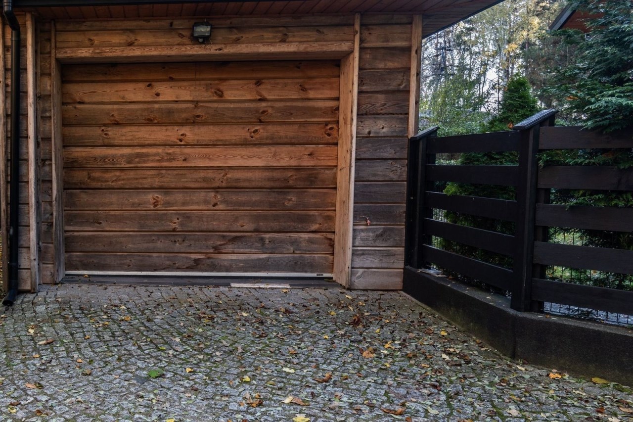 Drewniana brama garażowa na pilota.