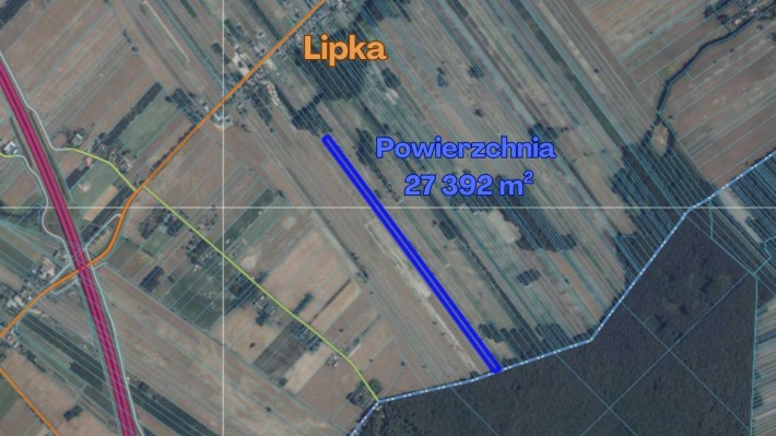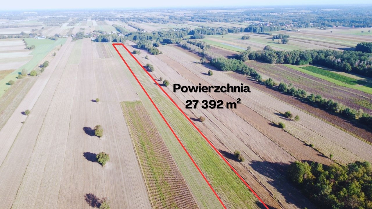 ✅Działka o regularnym kształcie prostokąta ma powierzchnię 27 392 m2 i wymiary: 25 m x 1149 x 24 x 1143 m.